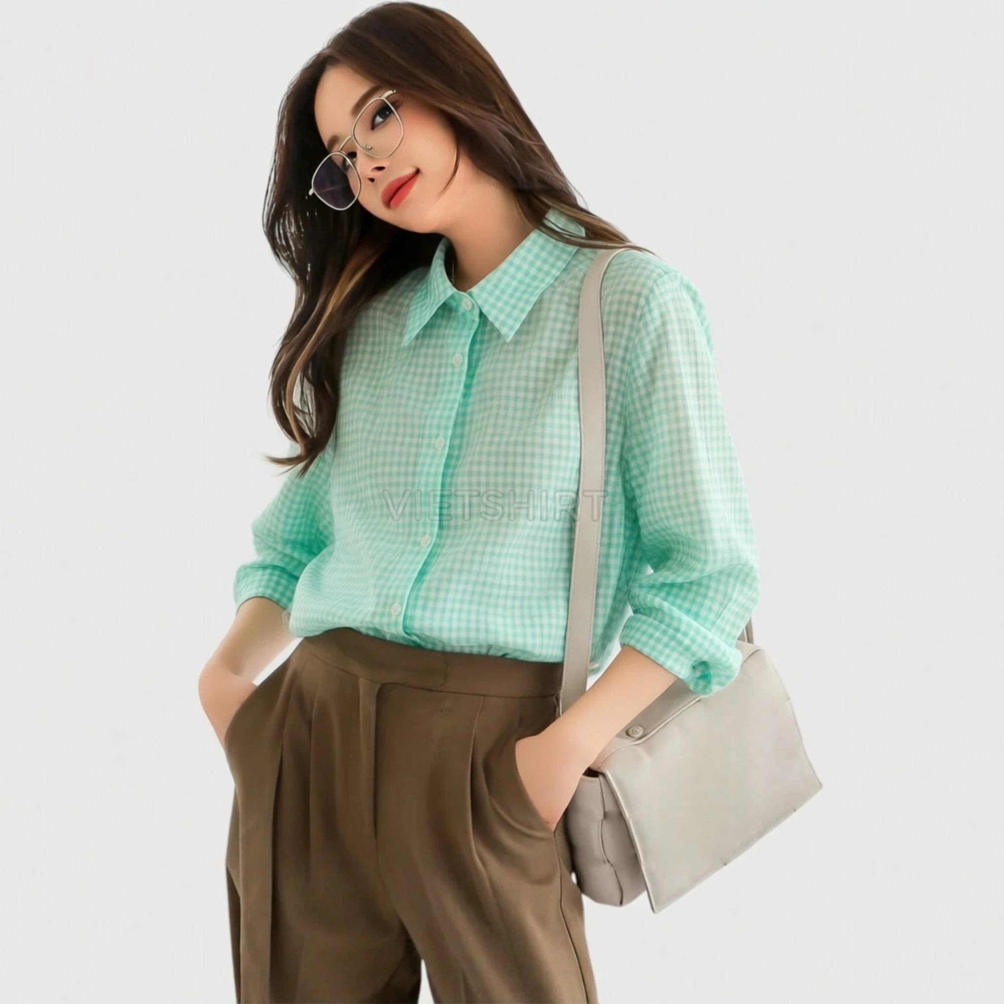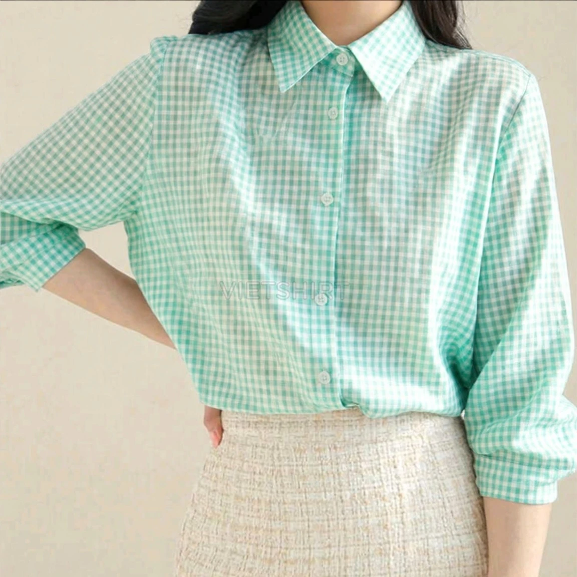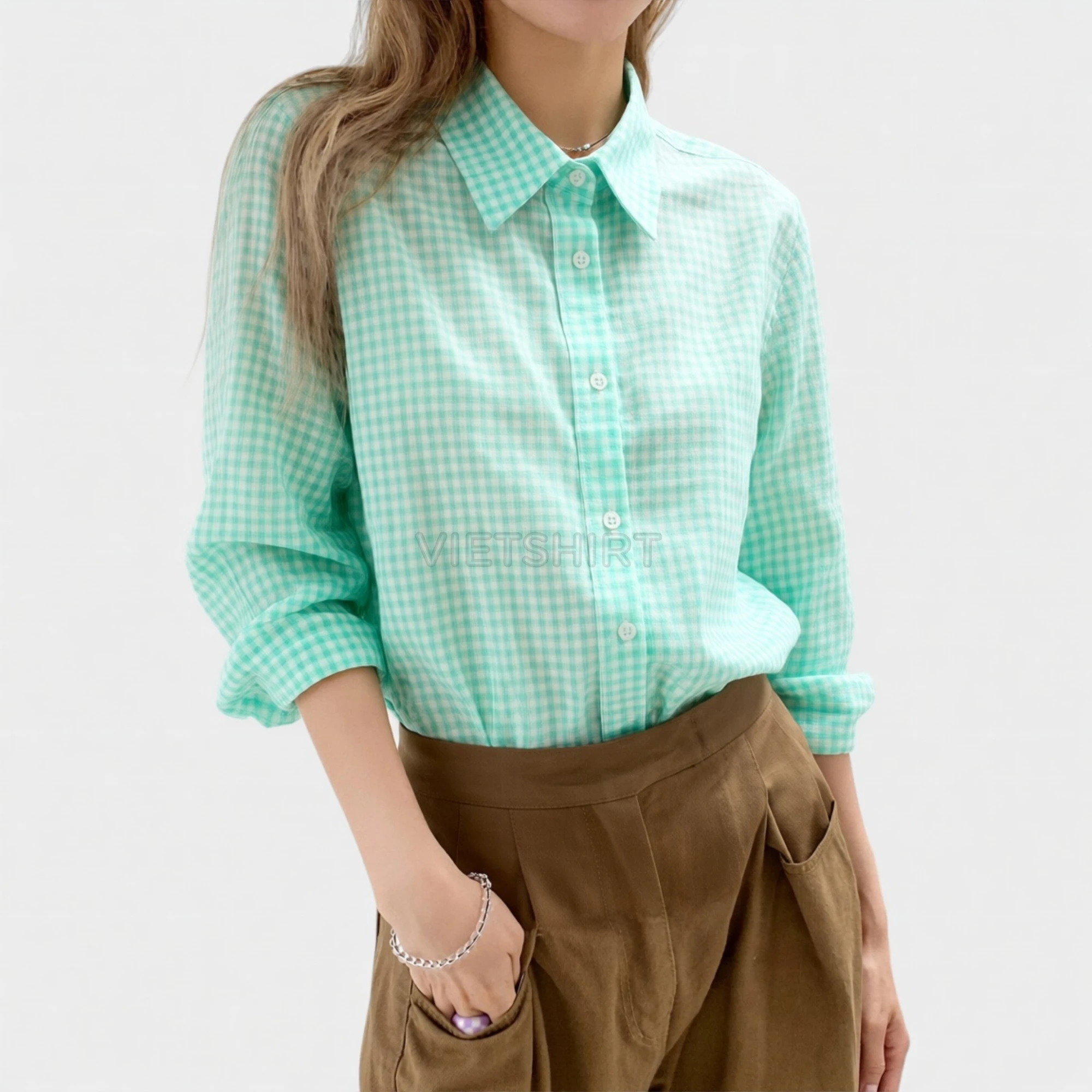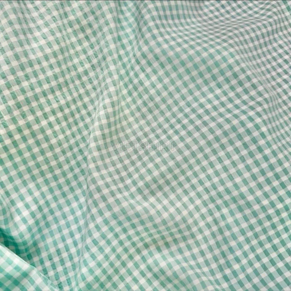 Vải may ca rô cotton màu xanh lá nhạt